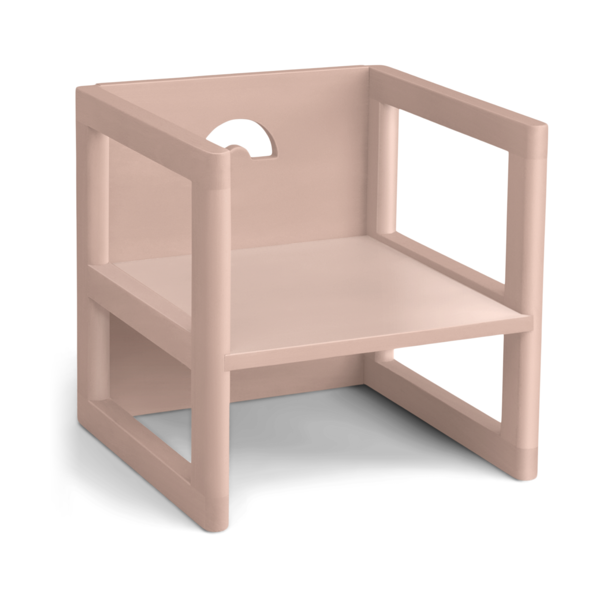 Appreciate the solids wood construction and perfect for my toddler. Like that it will grow with him and can be flipped to other arrangement when he is taller— and fits right under the table. Expect to finally use it as stool once he outgrows chair!