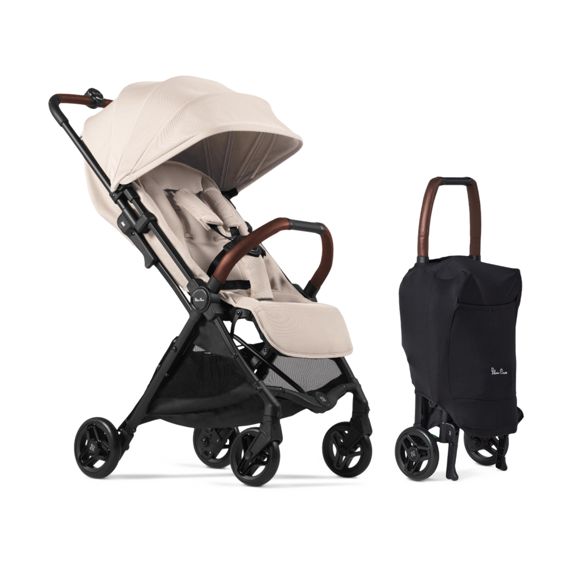 Jet 5 features a spacious lie-flat seat that can be used from birth to 55 lbs, a pull-along folded design and lightweight frame. This aircraft cabin-approved stroller meets hand luggage size requirements, so you can push your stroller right up to the plane door before folding it with ease into the included protective travel cover and storing in the cabin’s overhead compartment. When folded, it’s freestanding on two wheels and pulls along suitcase-style.