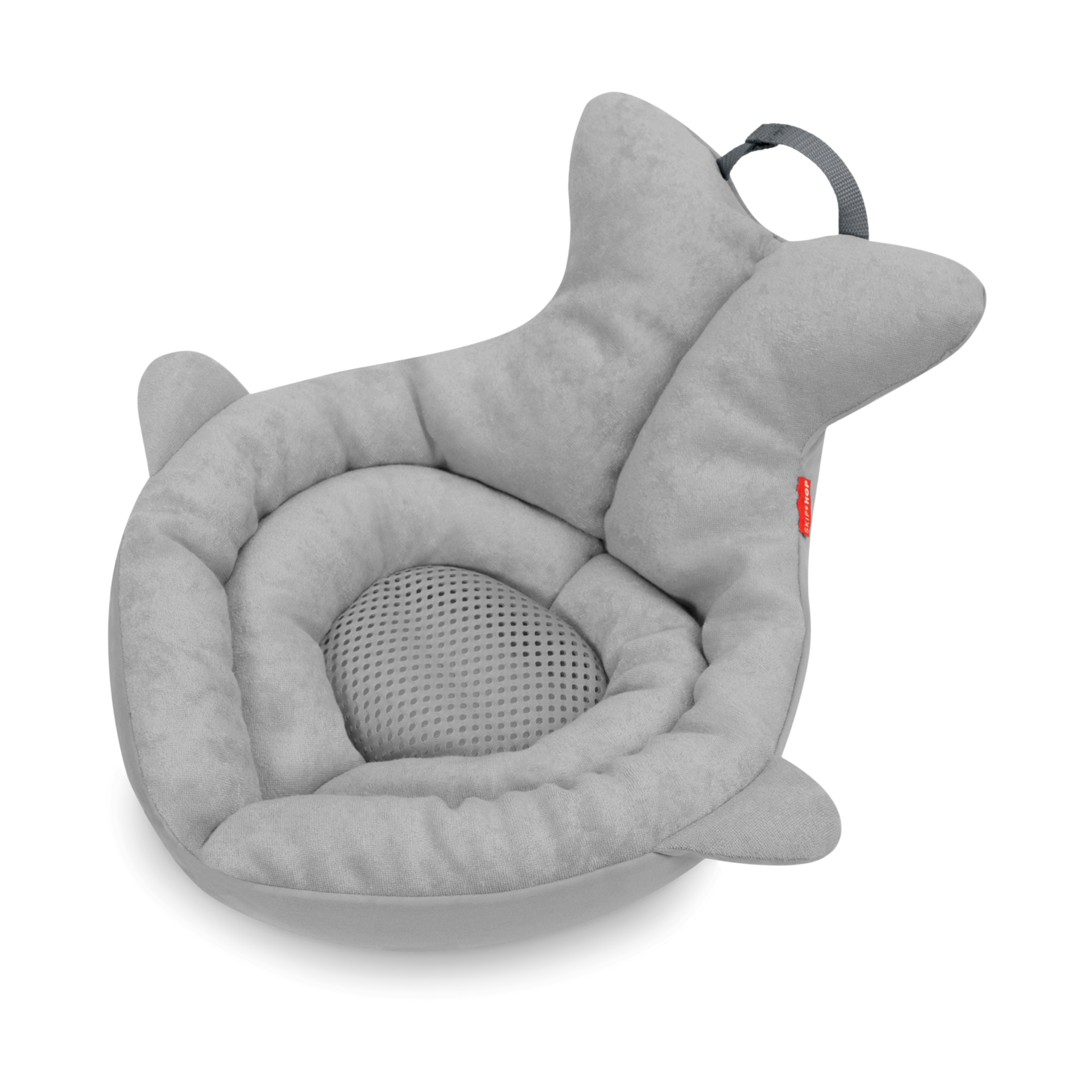 Sized to cradle newborns and infants, this plush sink bather helps make those first baths comfier. It features a soft terry surface and a padded whale tail for baby’s head.