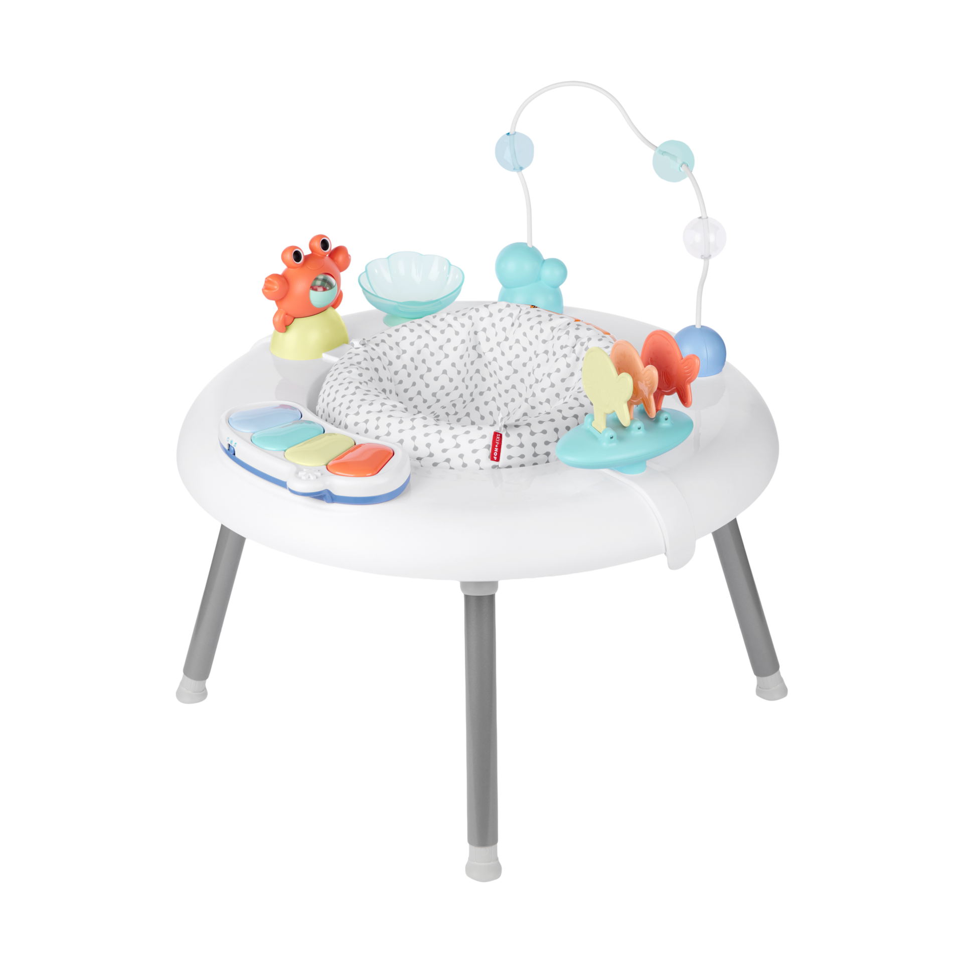Designed to grow with baby in two stages, this baby activity center is filled with sea-inspired toys, music and engaging activities.