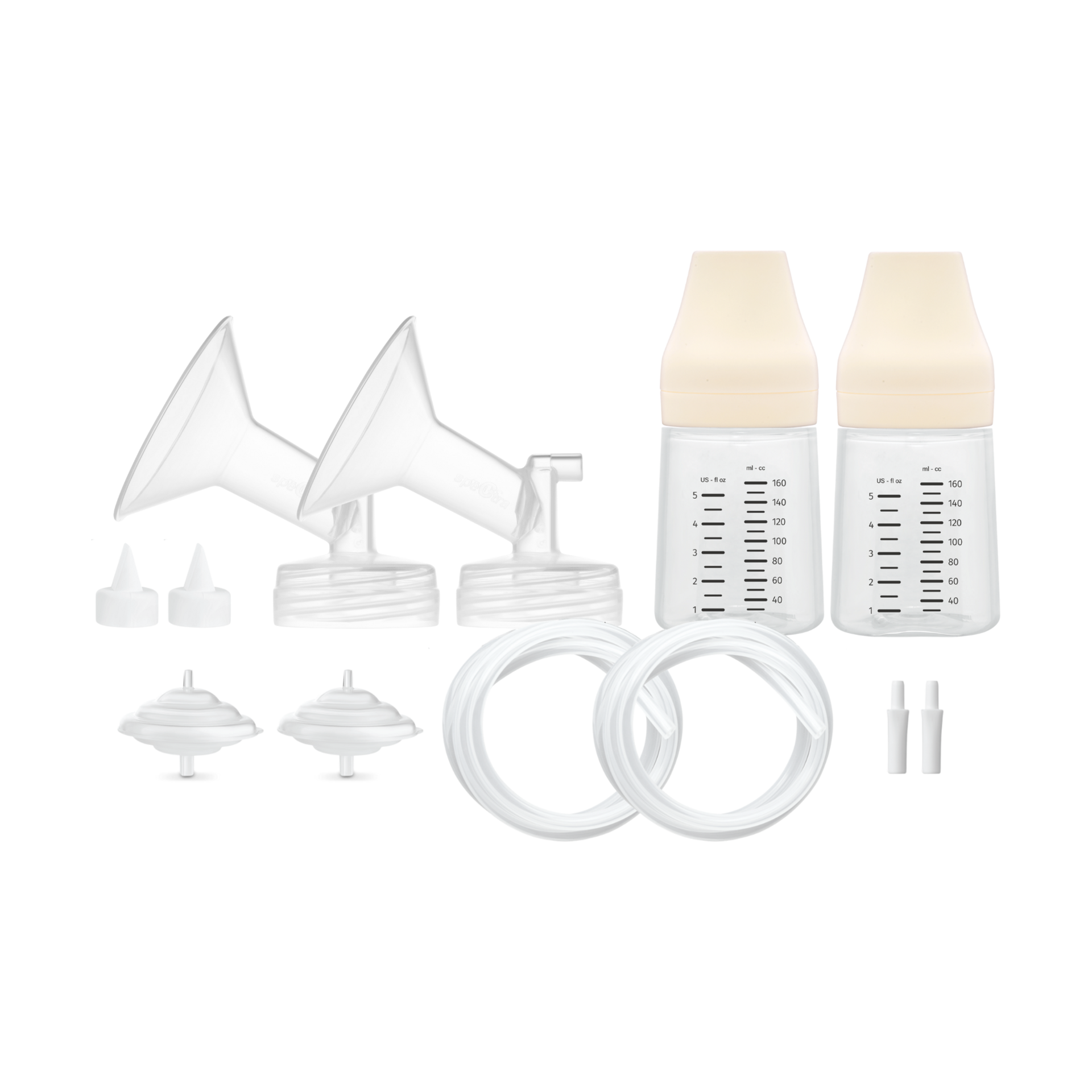 Designed to fit all Spectra breast pump models, this accessory kit includes an updated bottle design with a nipple, disc, cap and cover. It also comes with a flange, duckbill valve, backflow protector, tubing and adapter.