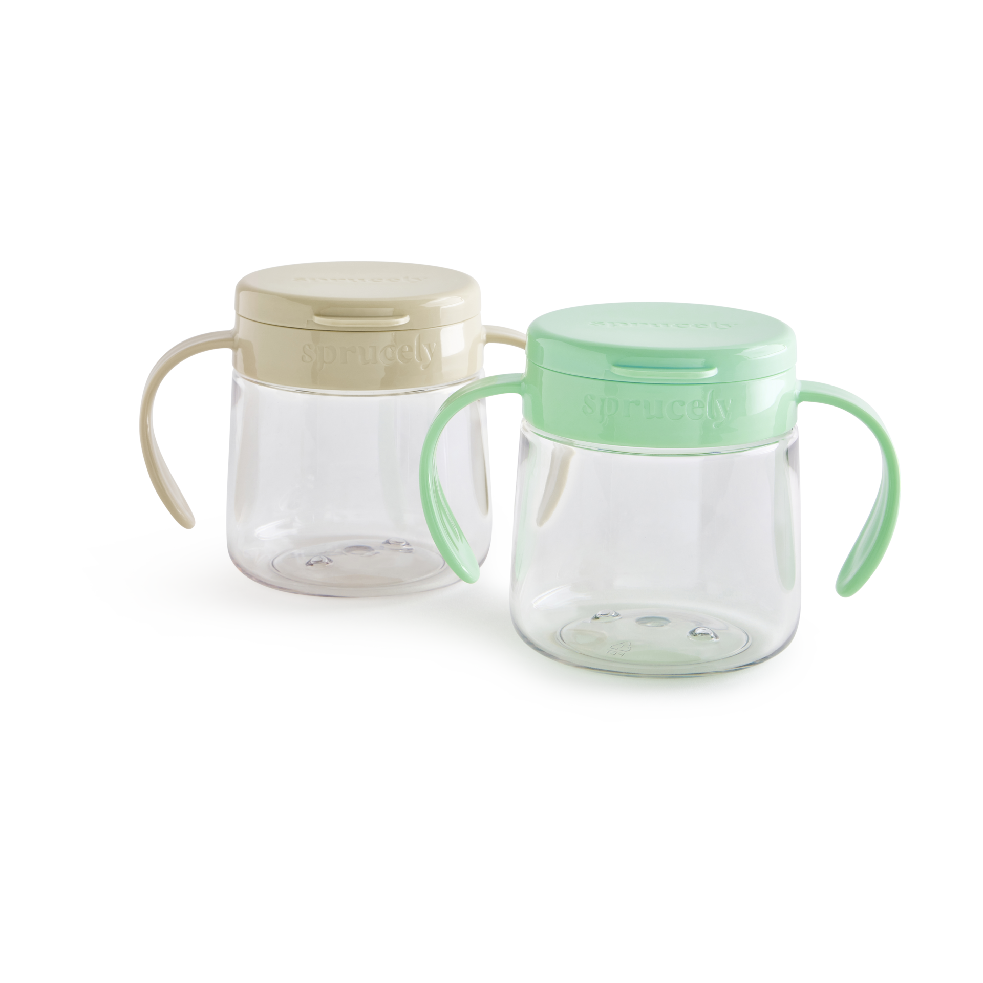 These Sprucely cups keep snacks fresh with an easy-twist lid and silicone seal. The lid stays put—even when tipped or tossed.