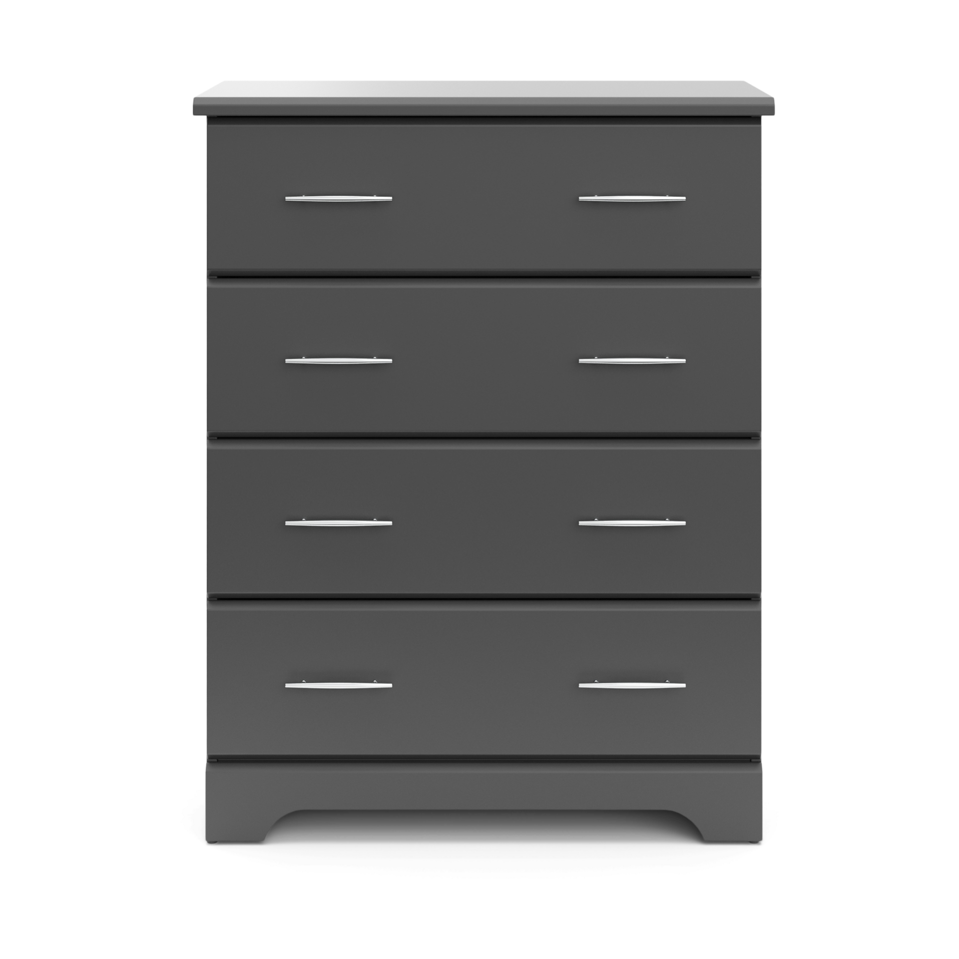 The Storkcraft Brookside 4 Drawer Chest features four spacious, smooth-gliding drawers. The modern design is accentuated by its streamlined metal drawer handles. Built to last, it’s crafted with warp-resistant and twist-resistant engineered wood, high-quality steel hardware and Euro-glide drawers. Also, the Brookside’s surface is stain-resistant, allowing it to be easily wiped clean.
