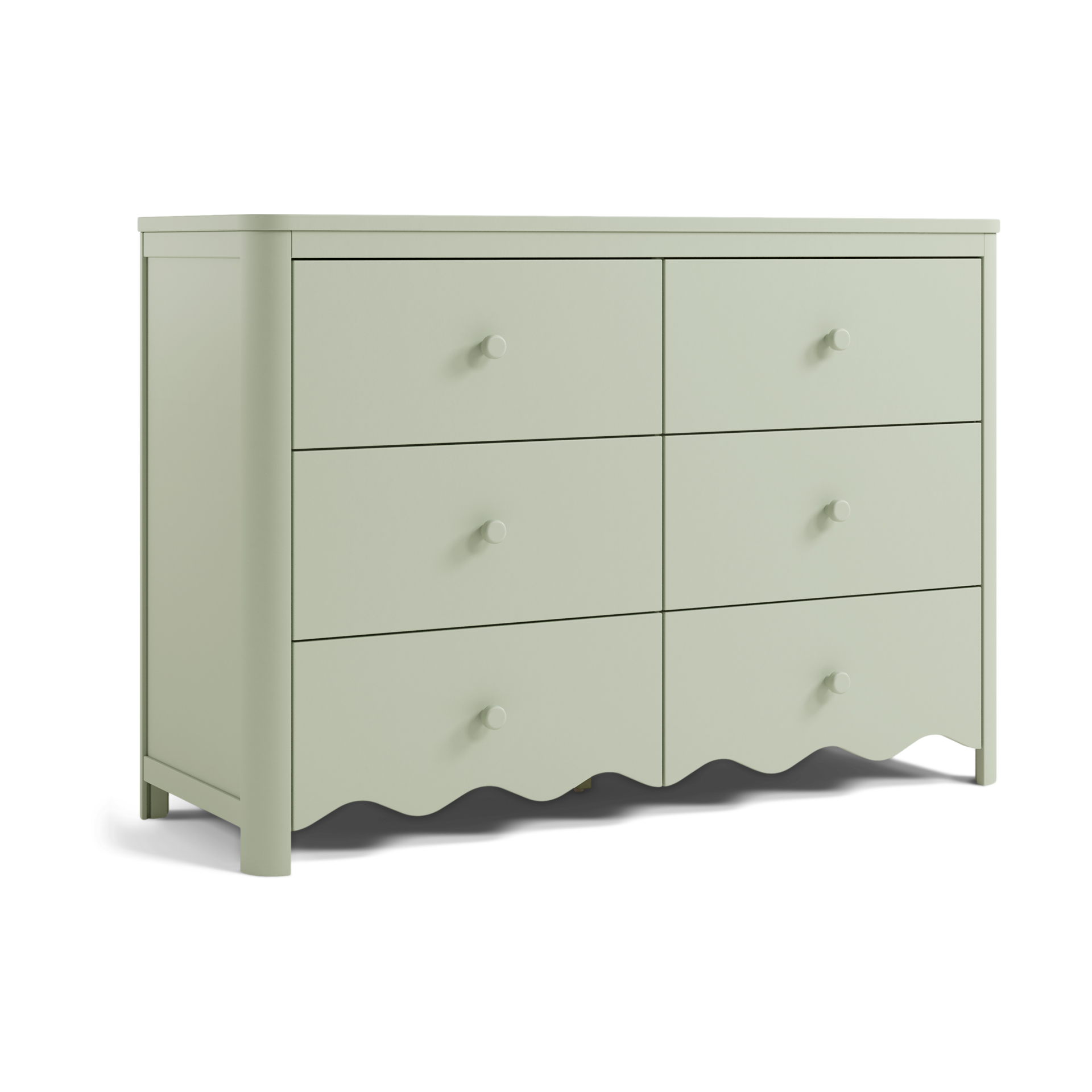 This dresser exceeded my expectations! I love the beautiful wavy edge detailing in the bottom drawers. The dresser is the perfect size for my 1 year old daughter's bedroom. The best part is the drawer locks. This is the first time I have ever had a dresser than only allows one drawer to be open at a time. This is such a genius safety feature for a young child's bedroom! Another beautiful Storkcraft piece in our home!