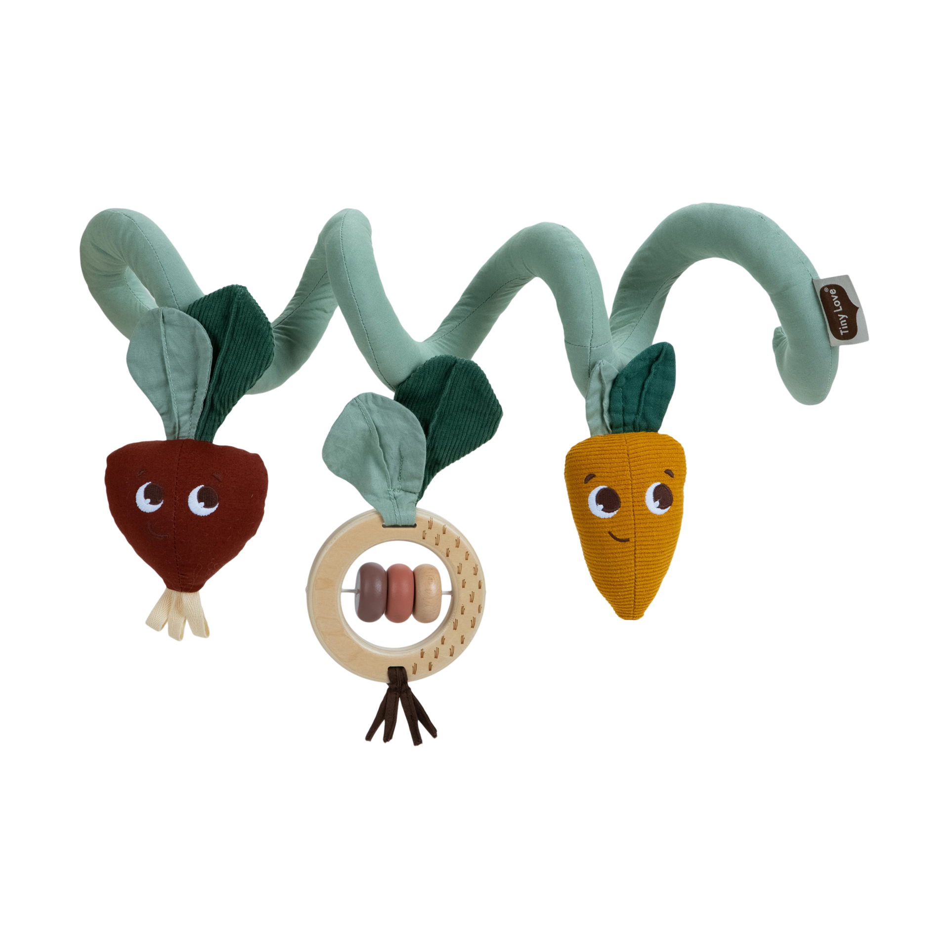 The Spiral Stroller Activity Toy offers on-the-go sensory stimulation and entertainment, helping grow important skills along the way. The adorable beetroot and carrot duo easily attaches to most strollers, encouraging little ones to engage with all eight developmental activities.