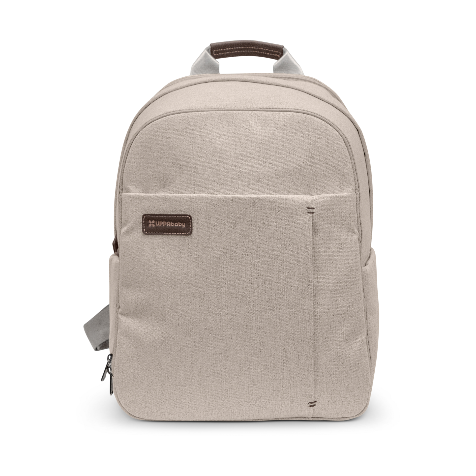 The UPPAbaby Changing Backpack features adjustable straps and multiple storage compartments. You can choose the adjustable backpack straps or the grab-and-go leather top handle.
