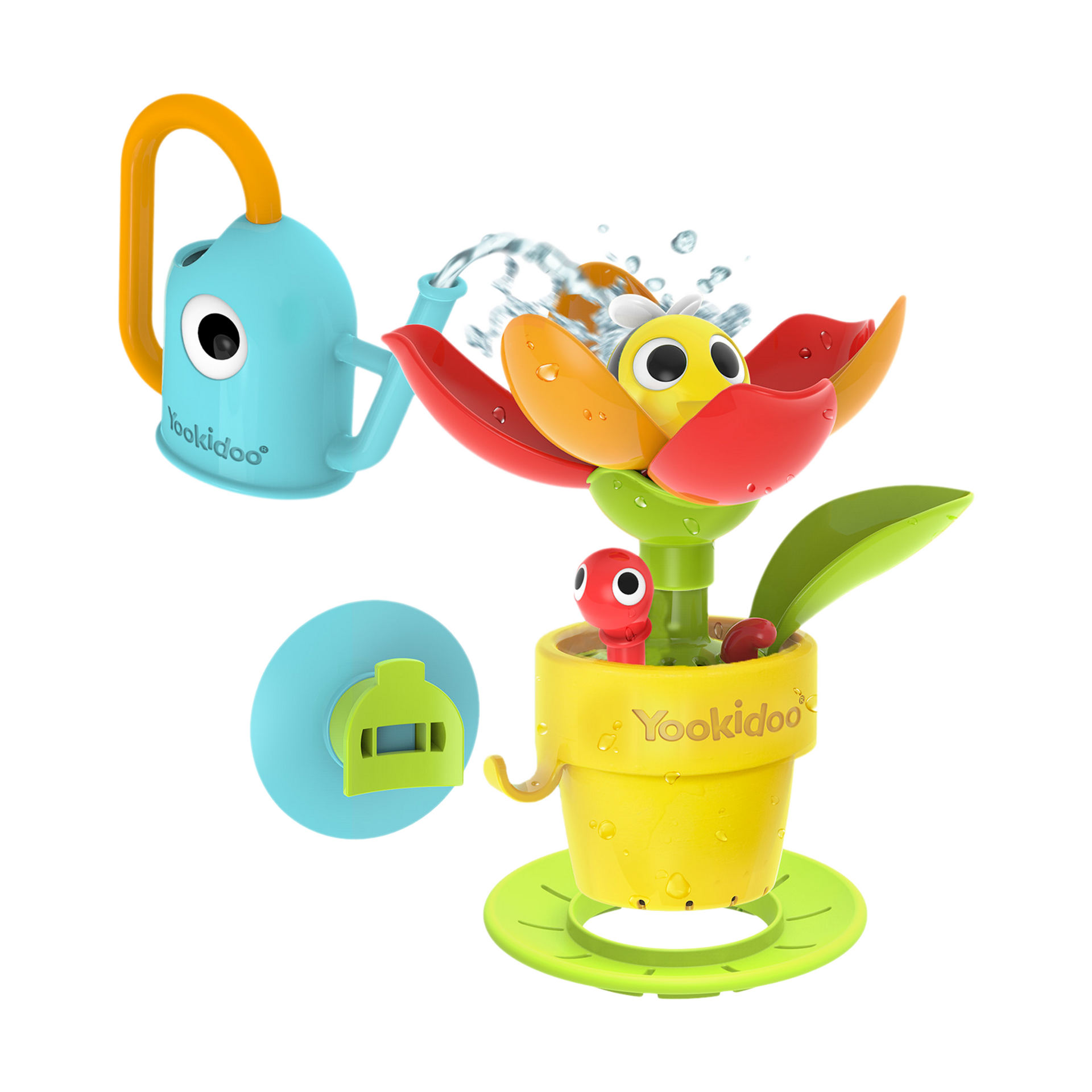 Water the flower and watch as the worm rises and the flower blossoms. The petals open to reveal a bumble bee inside.