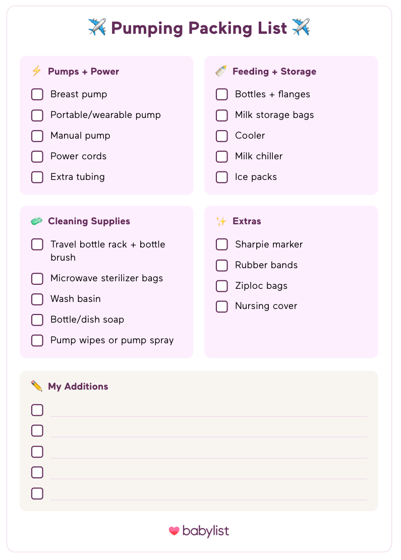 💡 Pro tip: Paper towels! “I packed a roll of paper towels, which definitely wasn't packing- or eco-friendly BUT was really helpful for drying out pump parts and making sure everything was sanitary,” one Babylist team member said.
