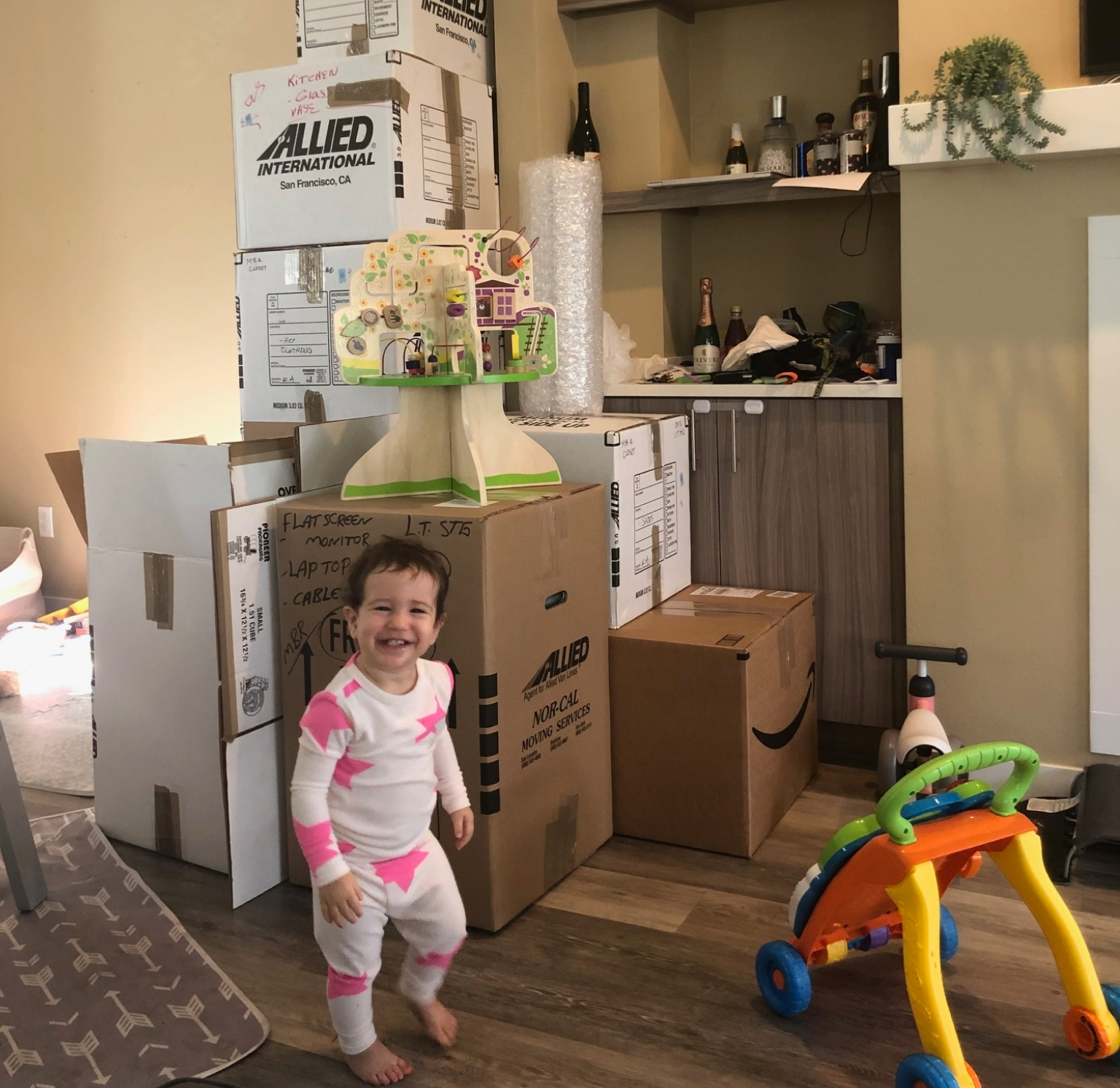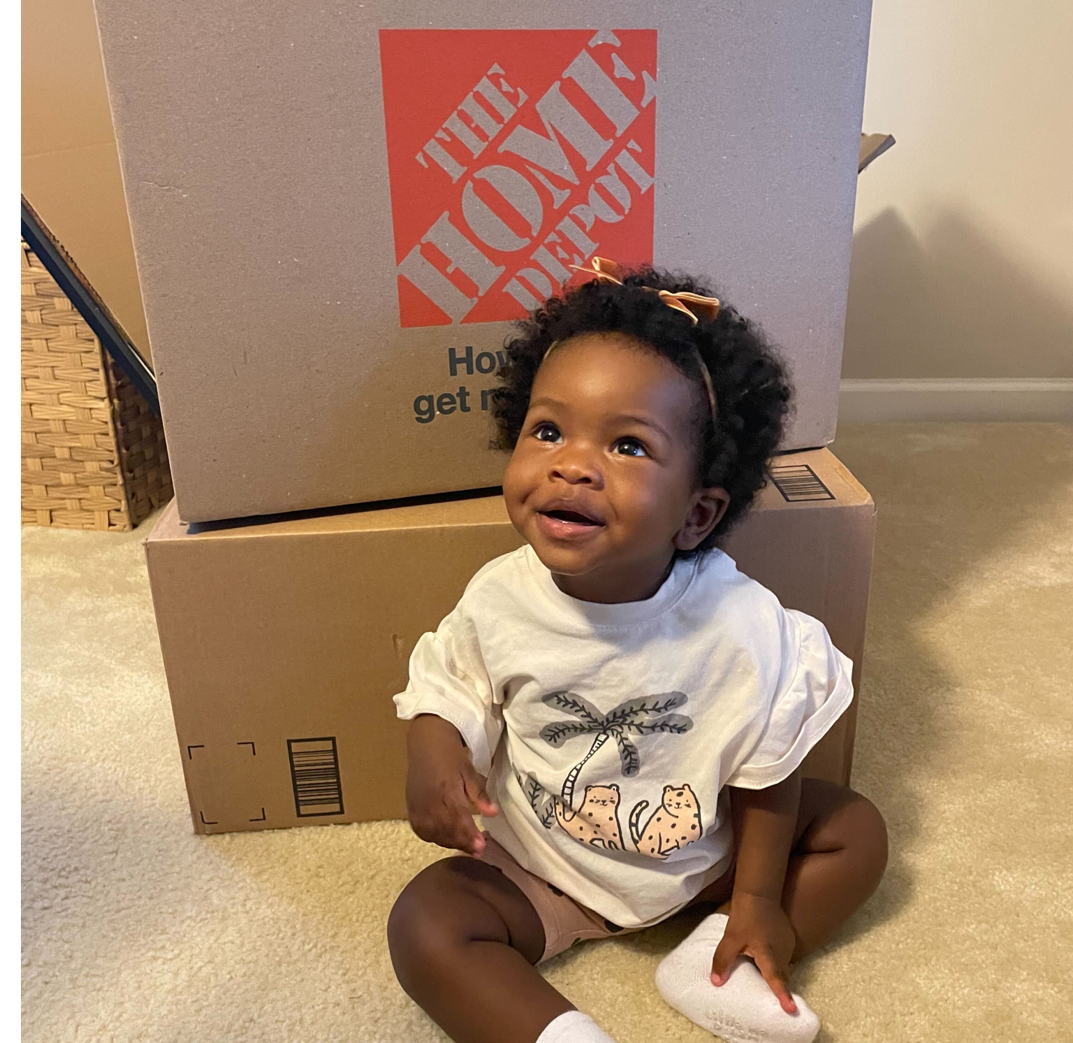 Once her family was ready to move into their new home, now 35 minutes away, they came to the rescue again. “My in-laws actually would drive out to us and kind of just sit in the living room and play with her, hold her and entertain her while we buzzed around the house to unpack, which has been really, really, really helpful because it's almost impossible to unpack and get your house organized with a baby who can't really maneuver on their own.”