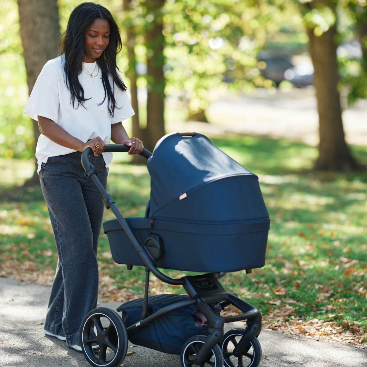 The Journey solves this with an included lay-flat bassinet that allows for safe sleep while strolling. This means you can stroll with your newborn from day one, up to 20 pounds (3:24). You can also use the stroller seat with your child until they reach 48.5 pounds—about the weight of an average six-year-old. Here’s what else stands out: